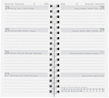 Dieser Biella Ersatzwochenplaner eignet sich ausgezeichnet für den privaten Gebrauch. Unser Wochenplaner mit 1 Woche pro Seite ist handlich, passt in jede Tasche, zum Modell Bruxelles Wire-O und zeigt Ihnen Ihre wöchentlichen Termine in der Übersicht.