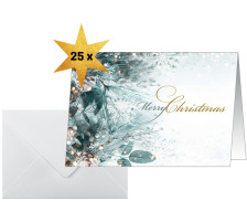 Mit einmaligem Motiv und ruck-zuck bedruckt: Weihnachts-Karten "Christmas wishes" (Motiv: Blätter und Zweige in grün, beige, weiss) im Format A6 (Weisskarton, 250 g/m², 25 Karten). Inkl. 25 passender, gummierter Umschläge. Überraschen Sie Geschäftspartner, Mitarbeiter, Kollegen oder auch Freunde und Familie mit exklusiven Grüssen zur Weihnachtszeit. Individuell und unkompliziert bedruckbar - für Ihre persönliche und einzigartige Weihnachtspost im Handumdrehen. Keine Abhängigkeit von Druckereien, geringe Auflagen ganz nach Bedarf - und das in Premiumqualität.
